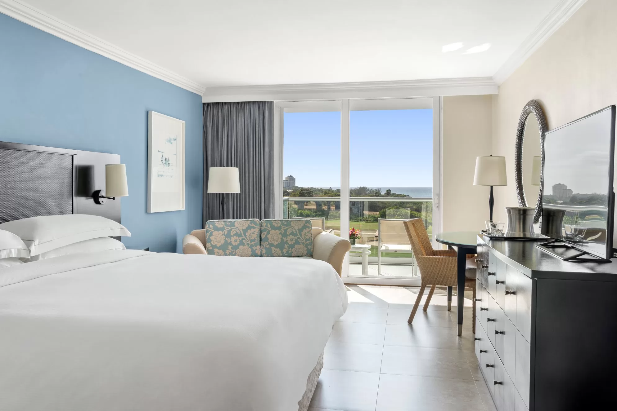 - Luxurious guest room with private patio or balcony