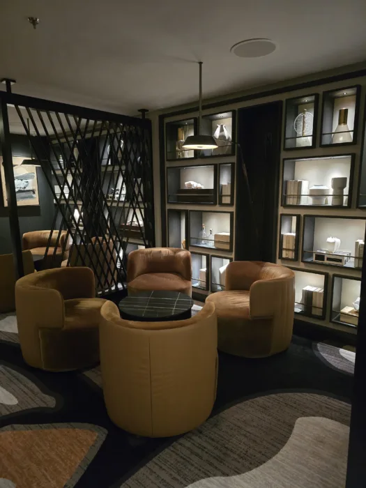 From the moment I walked in, the difference was noticeable. The design is very intentional, with clean lines, soft neutral tones, and a layout that feels open without being cold. It strikes that balance of feeling cozy and relaxing, while still giving you room to breathe (which is not always the case on a cruise ship).