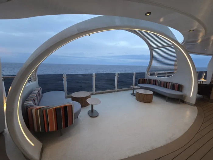 If you’ve cruised before, you know that cruise pool decks can get crowded and overwhelming fast. One thing I love about Aqua is that there are plenty of outdoor options beyond the main pool deck, so you’re not competing for the same space as everyone else. There are so many outdoor spaces spread throughout the ship, which means you’re not competing with everyone else for the same few chairs or trying to carve out a little personal space.