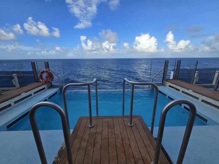 One feature that really stood out to me was Ocean Boulevard on Deck 8. This quickly became one of my favorite areas on board. It wraps around the entire ship and is lined with outdoor spaces, including two infinity pools, lounge chairs, sofas, and daybeds. Instead of everything being concentrated on the pool deck, you can step outside almost anywhere along Deck 8 to: