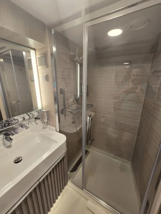 - The bathroom layout felt more functional than what I’ve experienced on other ships. The shower, especially, was slightly larger and just easier to move around in, which you don’t fully appreciate until you’ve dealt with a tiny cruise shower before.