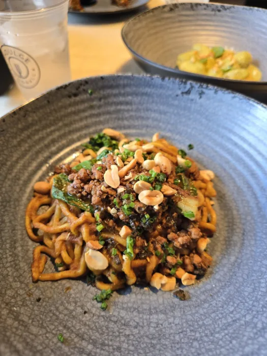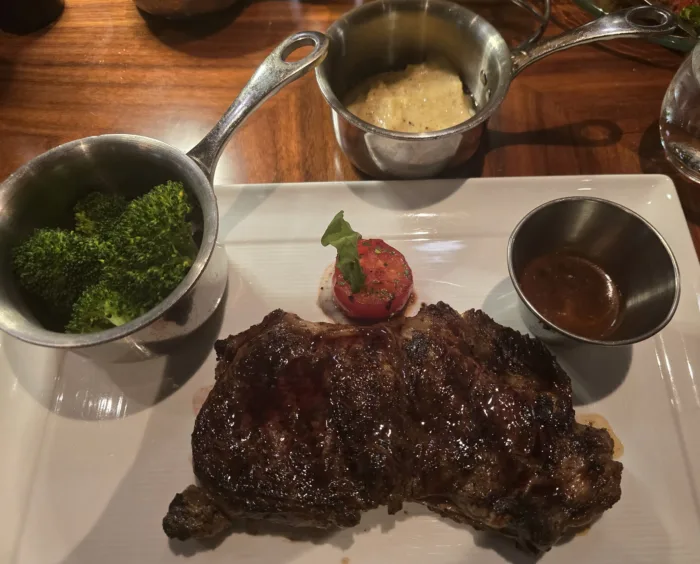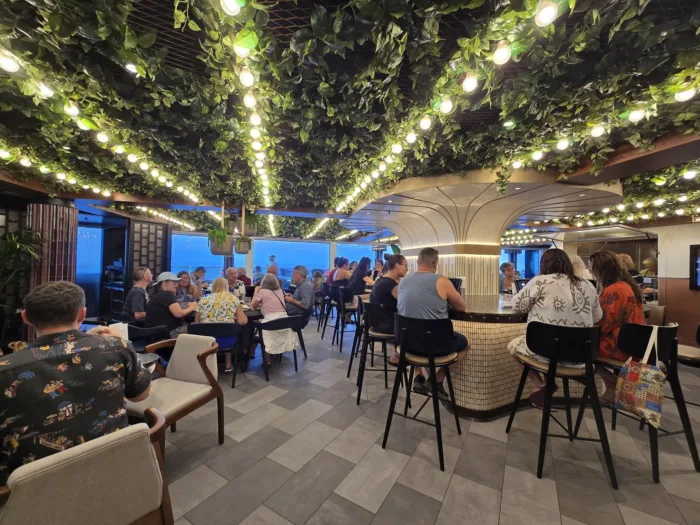 My husband’s favorite spot onboard was Indulge Food Hall. Let’s just say he went multiple times during our 7-night cruise! It’s included in the cruise fare and offers a really fun, different dining experience. It’s a large, lively space with multiple food stations featuring different cuisines. Once you grab a seat, you order everything from a tablet at your table, and the food is served tapas-style, so you can try a little of everything. Options include Indian, BBQ, Latin-inspired dishes, noodles, rotisserie, tapas, and even plant-based choices, so there’s truly something for everyone.