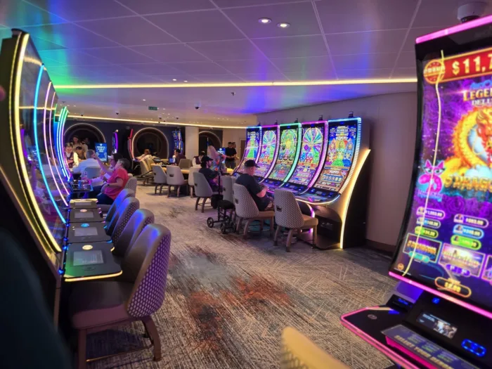 👉One drawback to note: The casino sits in the atrium with no walls to divide the areas. Smoking is allowed in the casino, so if you’re sensitive to cigarette smoke, this may not be an ideal space for you to spend your time.