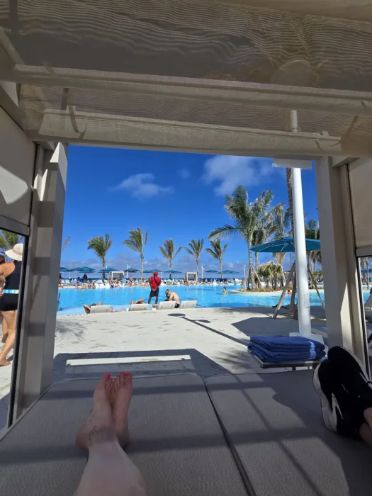 A shaded cabana by the pool, a gentle ocean breeze, and bar service that comes to you. We spent hours lounging, sipping drinks, and just letting the world slow down. It felt indulgent, yet it was surprisingly reasonable, especially compared to cabana rentals on other cruise lines’ private islands (looking at you, Royal Caribbean). It was the kind of experience that turns a fun port stop into a memorable part of vacation. If total relaxation is your goal, reserve your cabana early because they can go fast.
